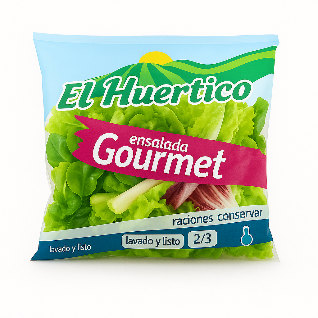 La ensalada gourmet El Huertico es una cuidada combinación de hojas tiernas seleccionadas por su textura, color y sabor. Contiene una mezcla de lechugas variadas, rúcula, canónigos y otras hojas baby, pensadas para ofrecer una experiencia fresca, ligera y llena de matices en cada bocado. Lista para consumir, es ideal para platos saludables, sofisticados y fáciles de preparar.