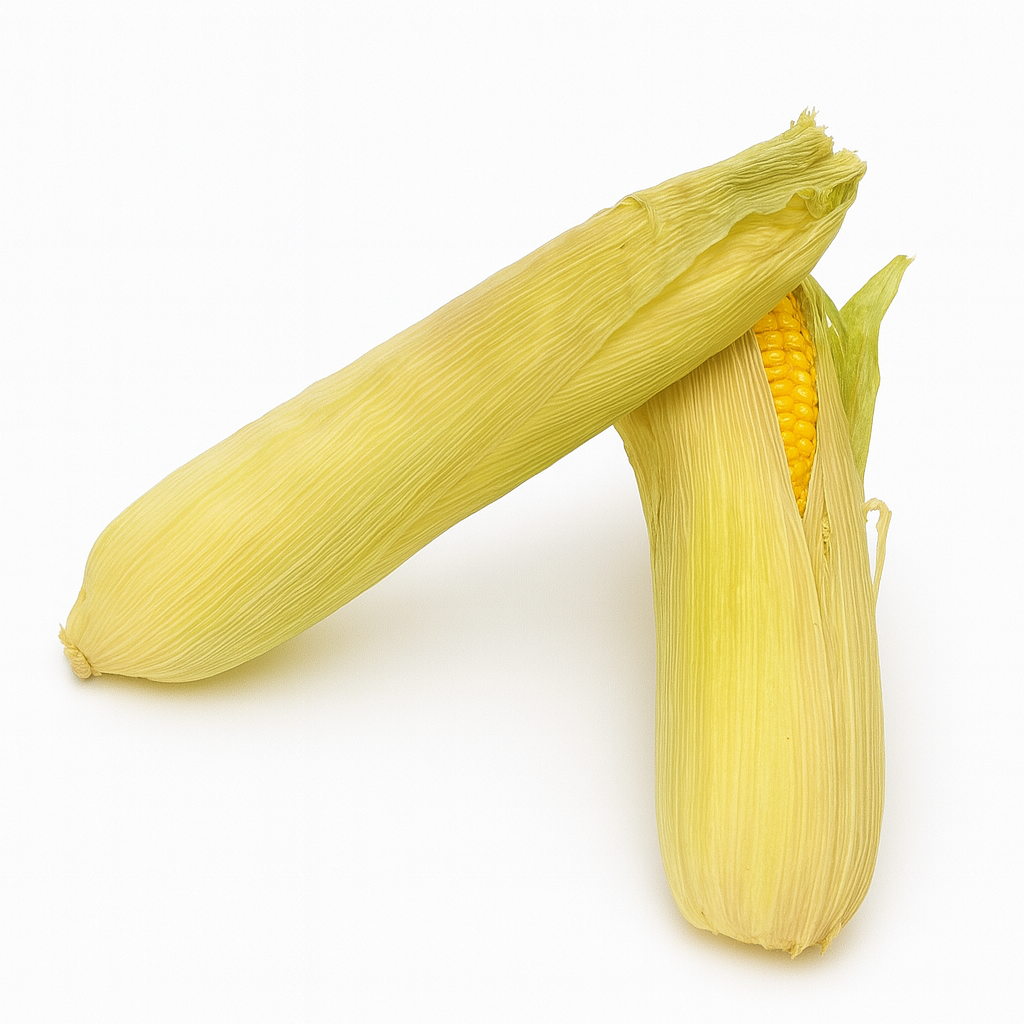 Mazorcas de maíz fresco – Tiernas y dulces, ideales para cocinar a la parrilla, hervidas o al vapor. Ricas en fibra, vitaminas del grupo B y antioxidantes, aportan energía natural y favorecen la digestión.